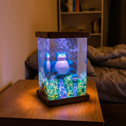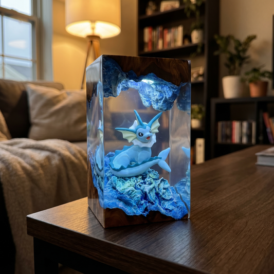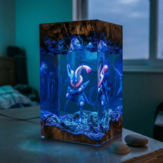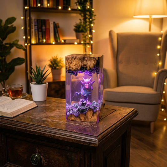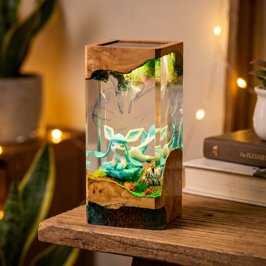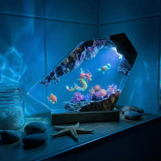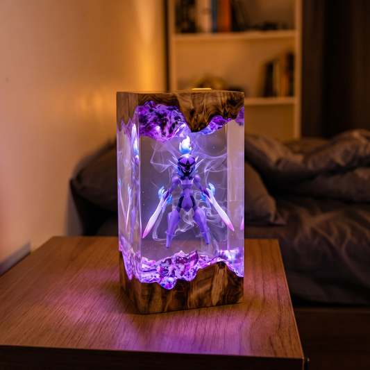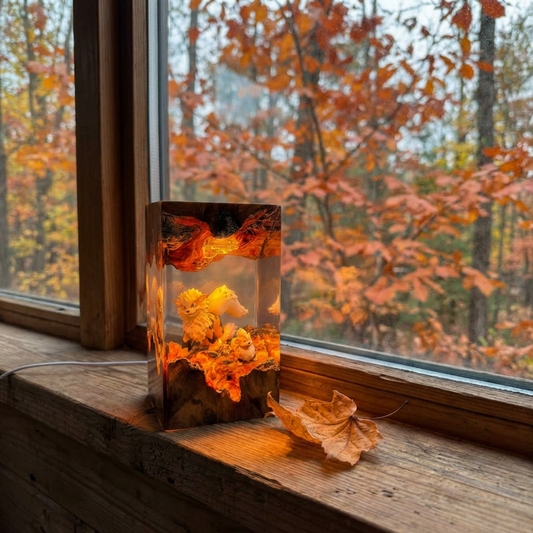 Je m'appelle Alicia et je fabrique des lampes en résine. Chaque lampe est coulée à la main dans mon atelier. Résine cristalline, LED intégrée, socle en bois brut. Une pièce de collection pensée pour trôner sur ton bureau ou ton étagère, pas pour dormir dans un tiroir.